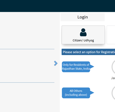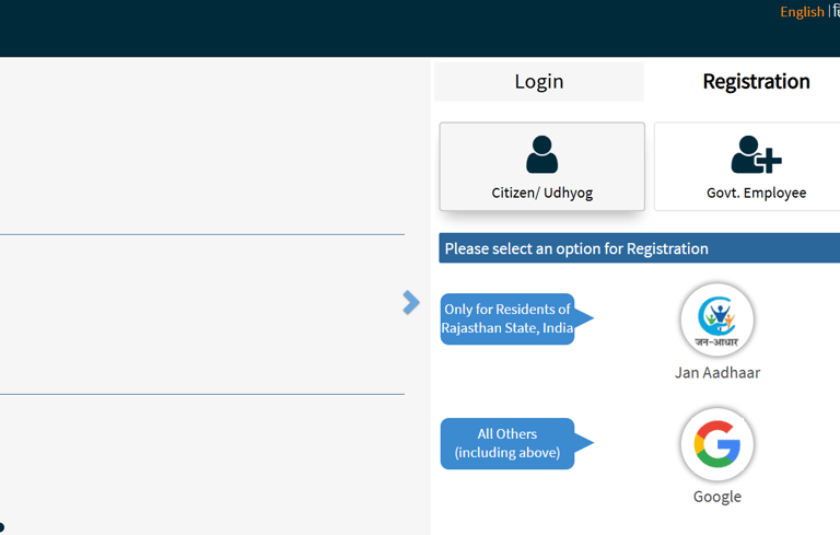 Easy Registration: Citizens can register using Aadhaar, Jan Aadhaar ID, Bhamashah, Google, Facebook, or mobile number. Businesses need a Business Registration Number (BRN), and government employees use their SIPF number.